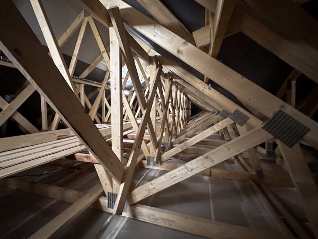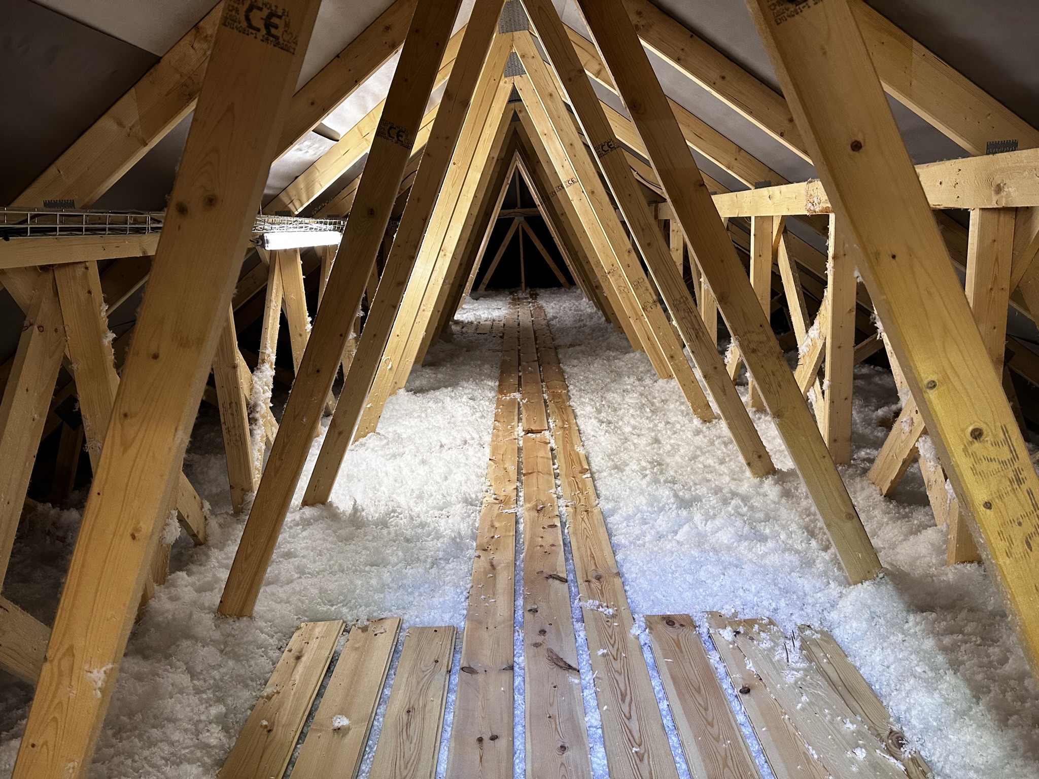 V rámci ďalšej realizácie v Stredočeskom kraji sme vykonávali fúkanú izoláciu nepochôdzneho podkrovia na drevostavbe. Zateplenie takýchto priestorov si okrem iného vyžaduje aj prípravu priestoru a vytvorenie lávky, po ktorej je následne možné sa v podkroví presúvať a aplikovať izoláciu.